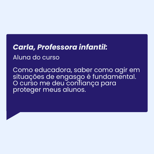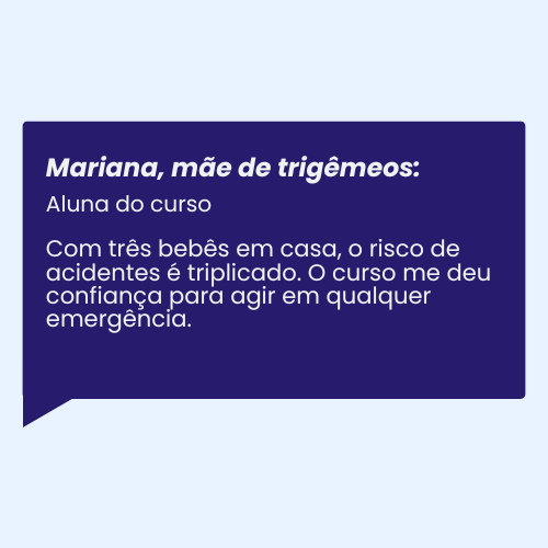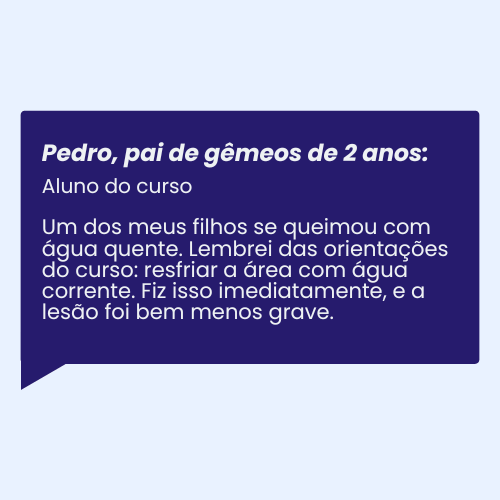 Os cursos são estruturados nas principais causas de emergências com queimaduras e engasgos em crianças. Portanto, oferecem recursos para você atuar de forma assertiva. Além disso, as demonstrações práticas são o grande diferencial para te proporcionar segurança, confiança e capacidade de ação.